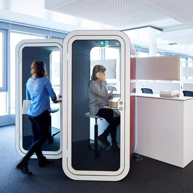 新公司,為嘈雜擁擠的辦公室設立了私人的、半隔音的電話亭。