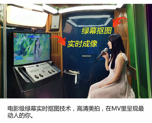 如果有需要加入特效的拍攝場景,基本是在一個綠色布景前完成,讓使用者置身于虛幻場景之中。綠幕摳像拍攝技術(shù)在當(dāng)今的影視制作中是一種非常普遍的拍攝手法。如果把這種綠幕技術(shù)應(yīng)用在迷你ktv唱歌機(jī)上又有什么效果呢?